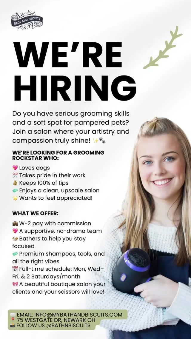 Safety is paramount at Bath & Biscuits. All our staff are trained in Pet CPR and First Aid, and we adhere to strict health protocols, including thorough assessments of skin, coat, ears, nails, and overall temperament before each grooming session. We also require up-to-date vaccinations for all pets to maintain a healthy environment.